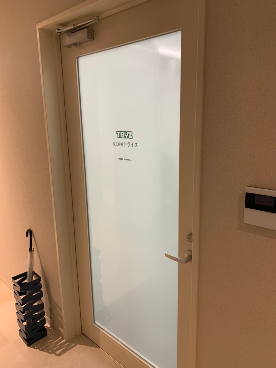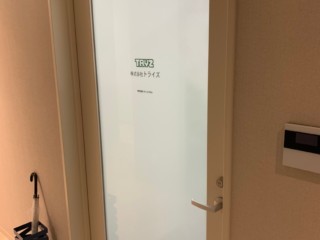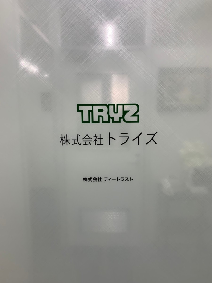 店舗ガラス面に社名をご希望の株式会社トライズ様