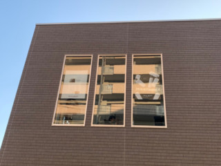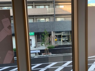 外から見える窓ガラスには店内から裏貼りをしたカッティングシートを施しています。