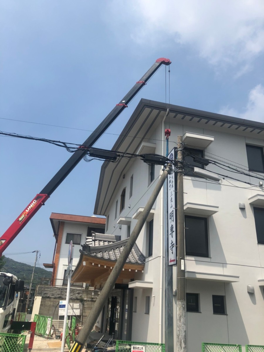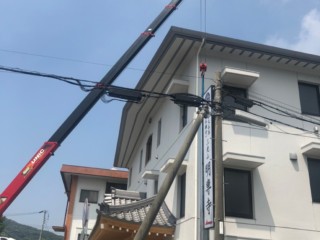 施工にはクレーン車を使って、