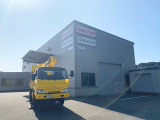 建物の壁面の方は、高所作業車を使用して取り付けています。