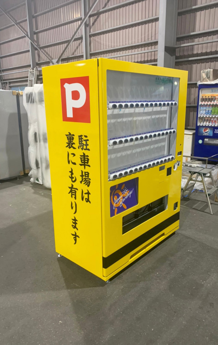 黄色が目を引く自動販売機は