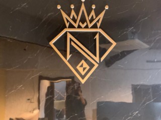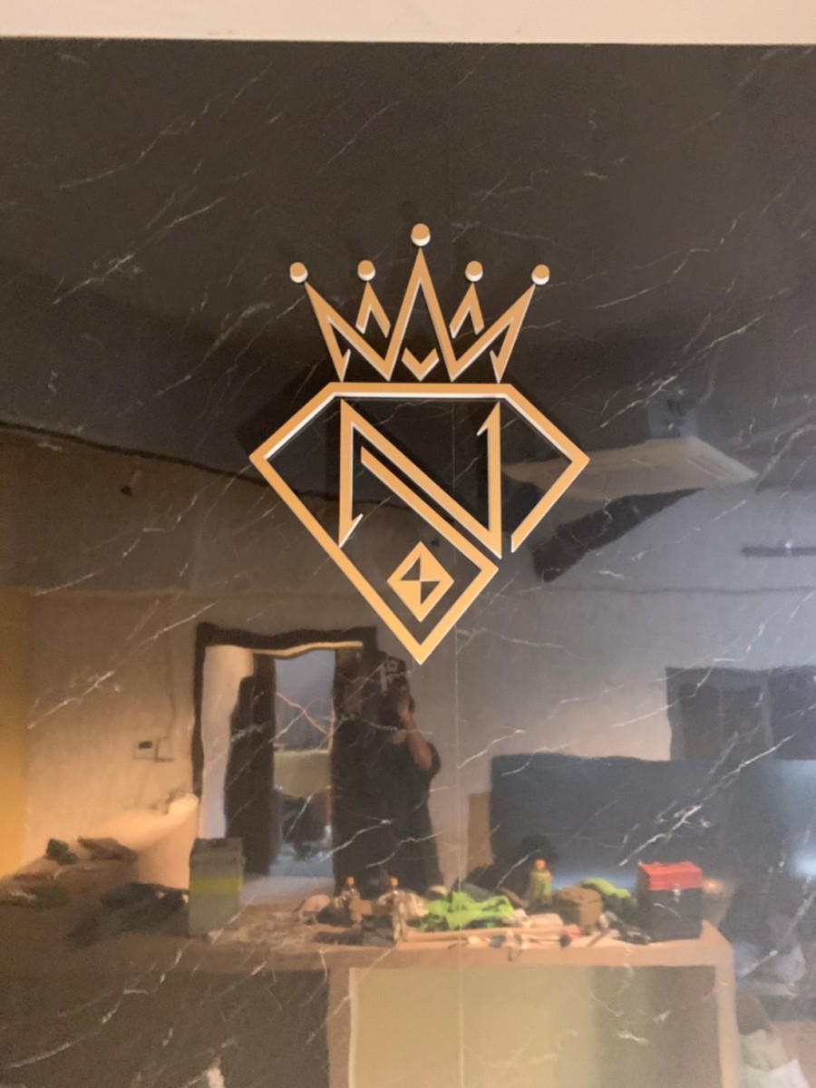 非電照時は店舗の黒大理石に映えるゴールドのロゴカラーでカッコよく