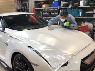 かっこいいGT-Rのラッピングのご依頼をいただき、施工させていただきました。