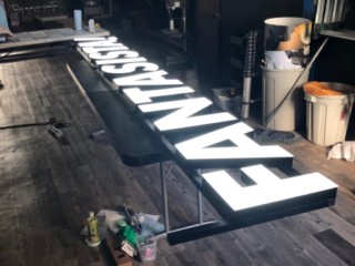 とっても素敵な吊り電照サインに仕上がりました。