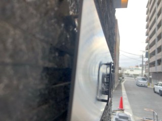 その板面にステンレス ヘアラインの切文字を