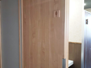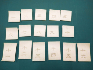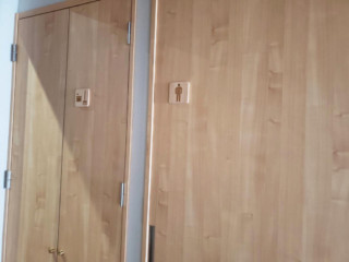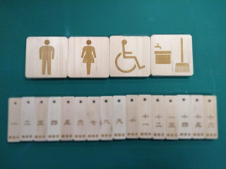 「ロッカー番号サイン、木製ロッカーキーとトイレ室名サイン」を