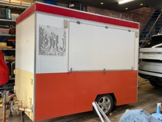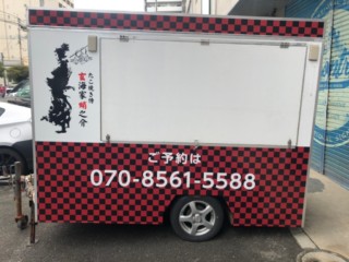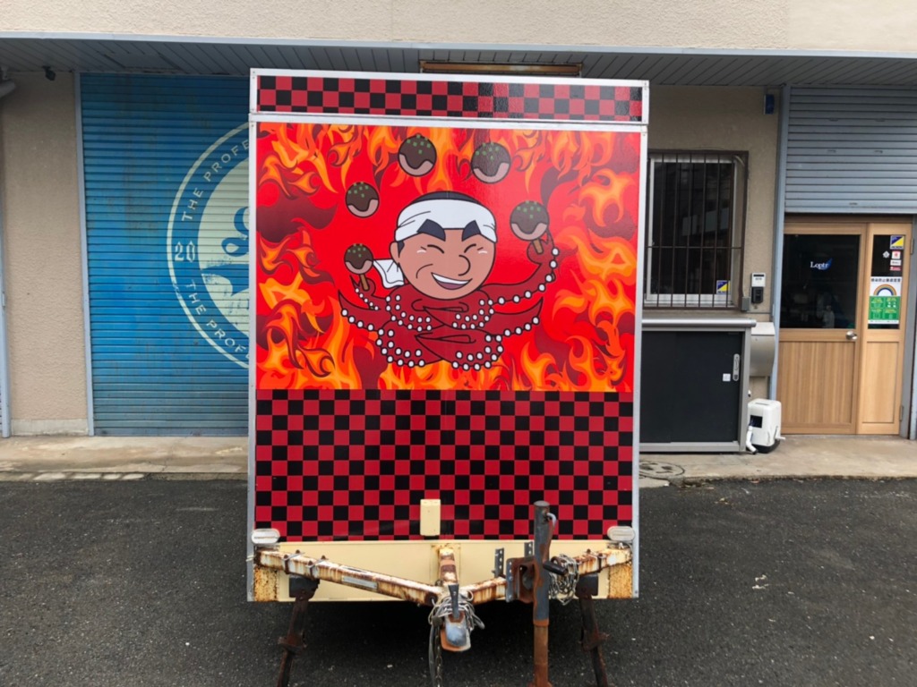 たこ焼きを移動販売されているトレーラーのラッピングを施工させて頂きました。
