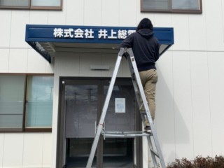事務所の壁の色と真っ白なカルプ文字の印象がぴったり合っていて誠実な印象です。