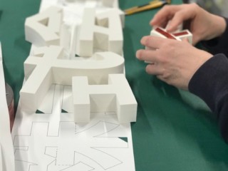 カルプ文字は金属を変形させてつくるチャンネル文字よりも比較的安価に立体感を出せますので、