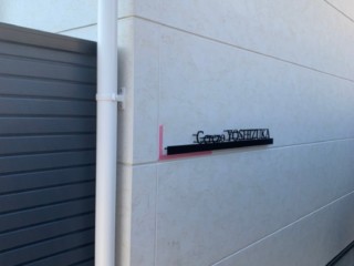 文字部分はステンレスの切り文字に、黒半ツヤの焼付塗装を施しています。