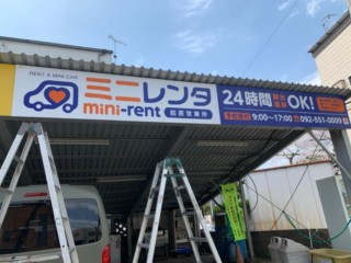 ミニレンタ様の屋外看板を製作施工致しました。