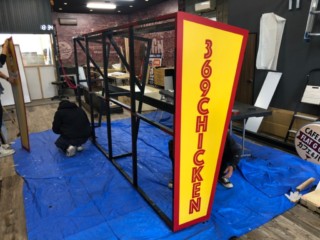369CHICKEN様の「店舗上部サイン」と「コルトン出力シート」の