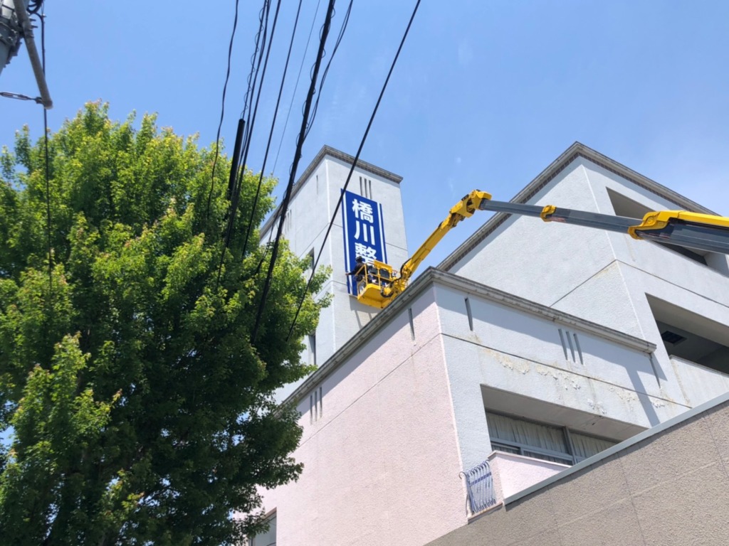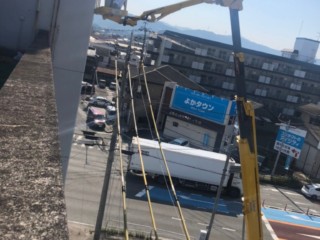 高所でのお取り付けでしたので、高所作業車を使用しています。