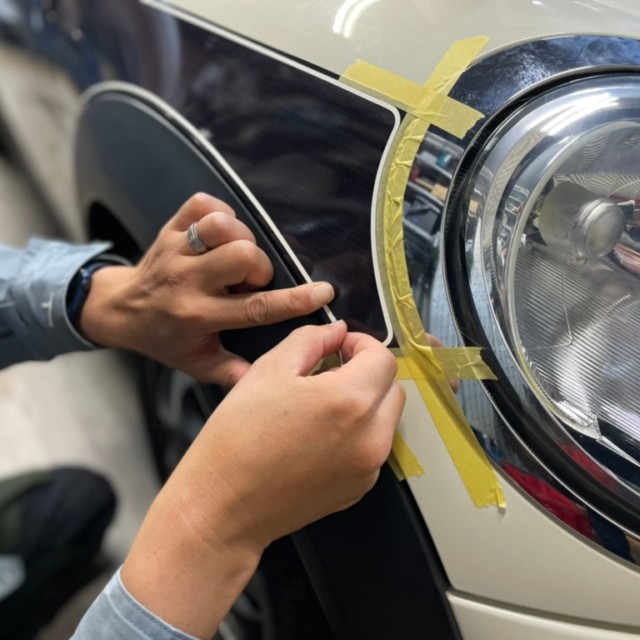 上から車体のお色味のカッティングシートを施工して再現しております。