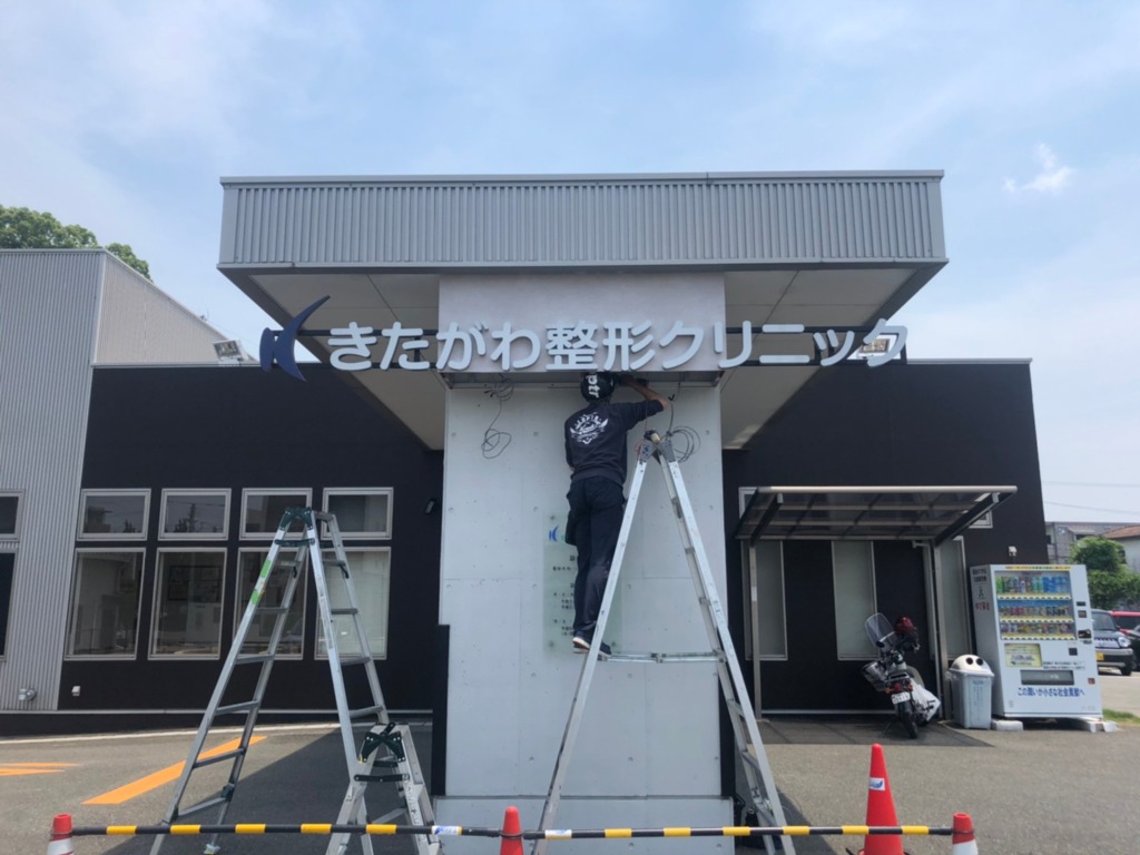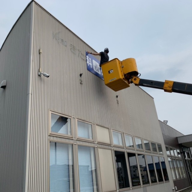 撤去した箇所に、弊社で製作したサインを取り付けていきます。