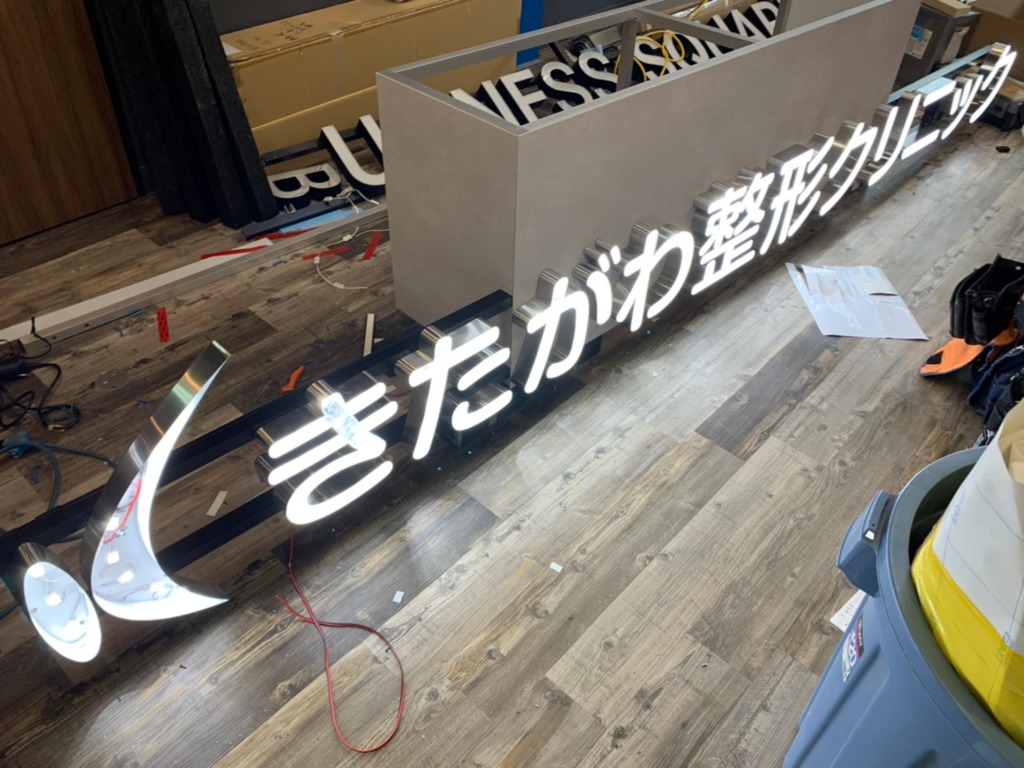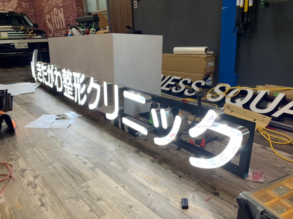 チャンネルサインの土台にアルミフレームを使用していますので、