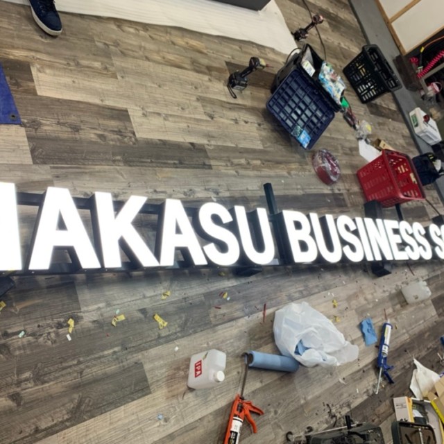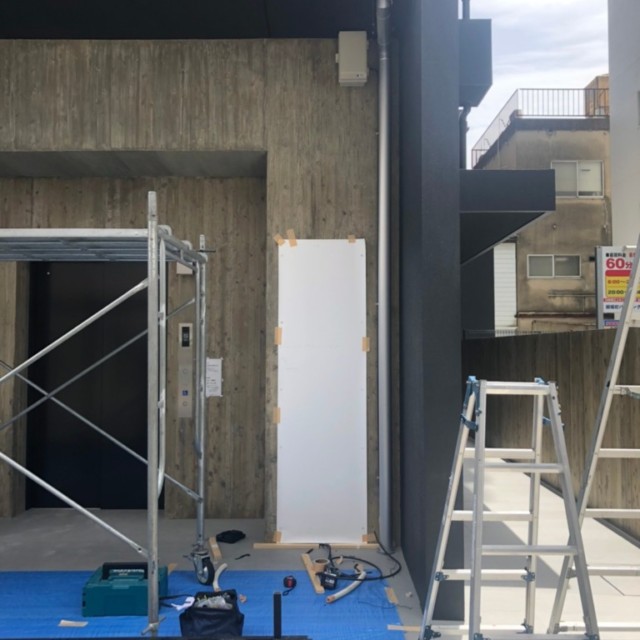 ご指定の取付位置を原寸原稿にて確認しながらサインを施工していきます。
