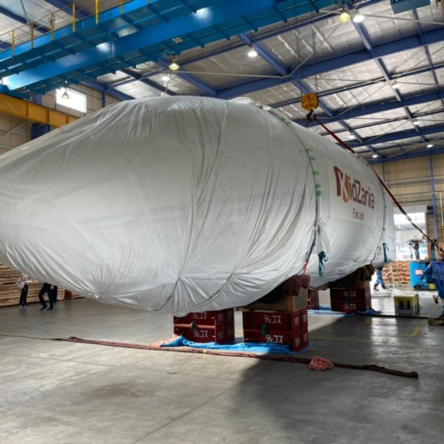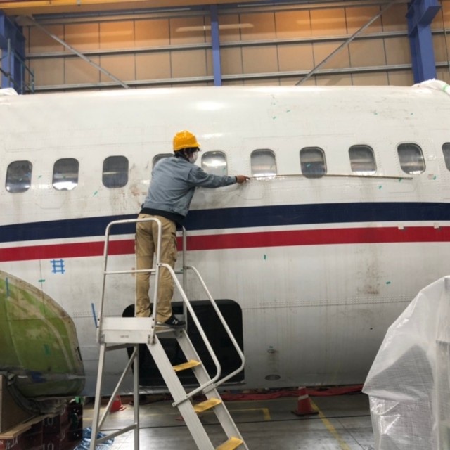 取り付け先の飛行機のサイズを測っています。