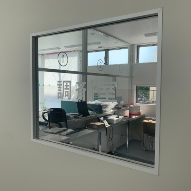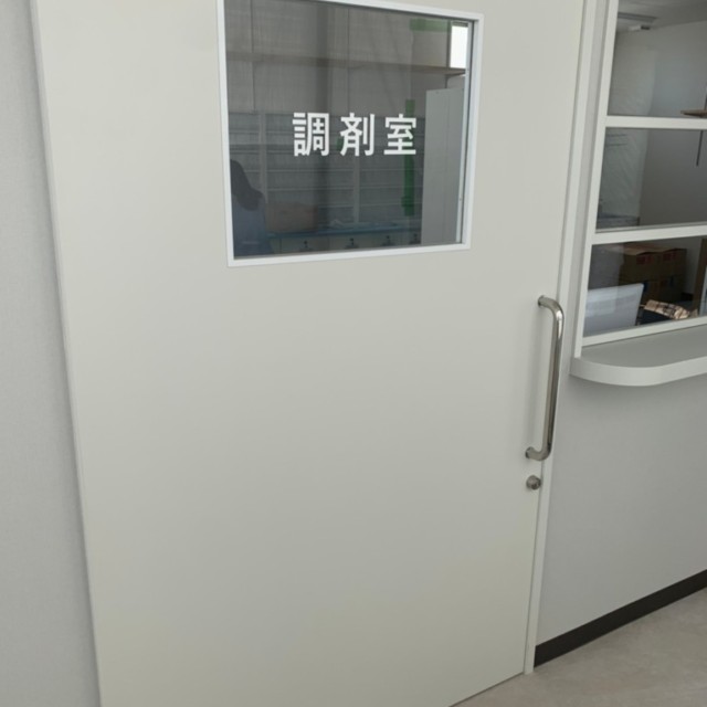 こちらの調剤室の文字も、白のカッティングシートを使用しています。