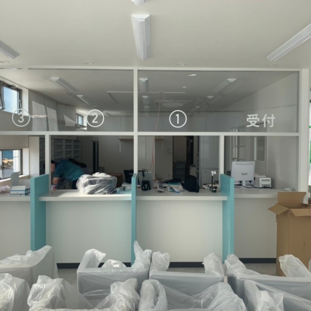 店内の受付部分のガラス面に、