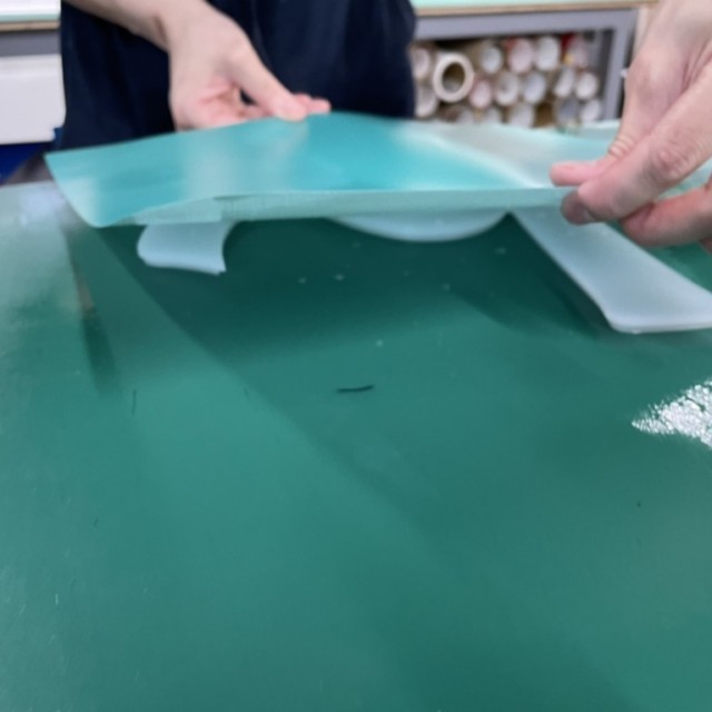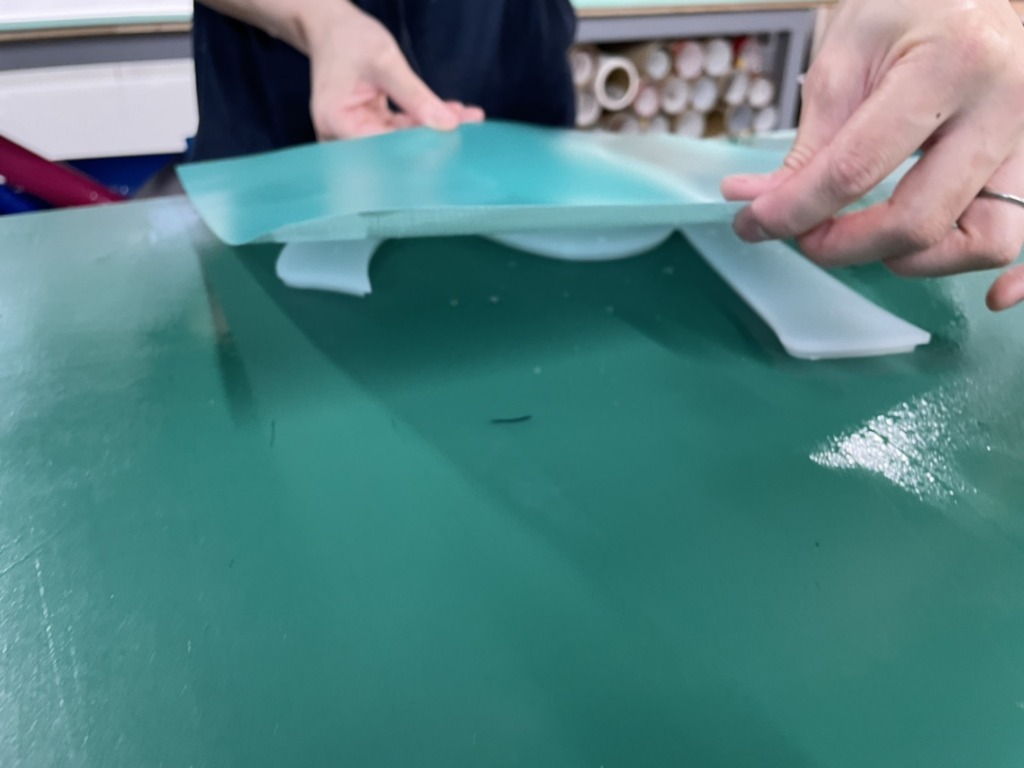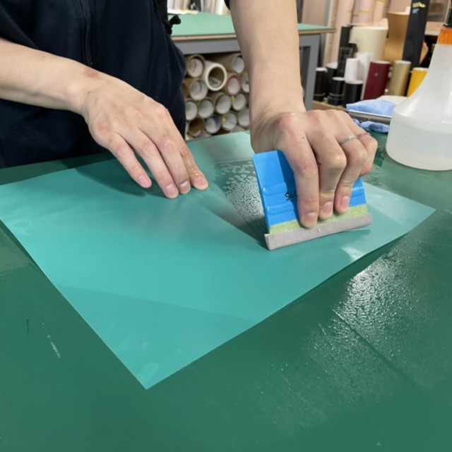 あとから空気を抜きやすいよう水貼りで製作しています。