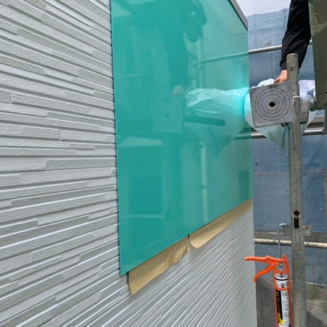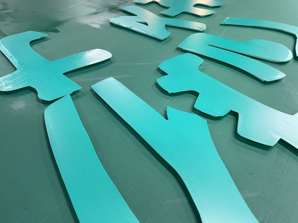 塗装ではなく、アルミ複合板にカッティングシートを貼って施工しております。