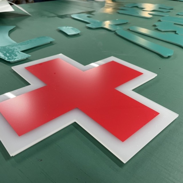 十字の部分は白のカッティングシートの上から赤のお色味のカッティングシートを貼っています。