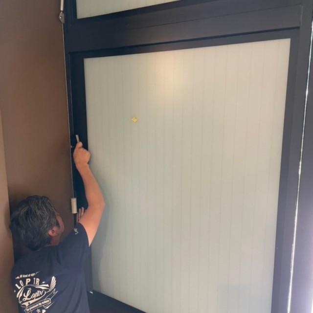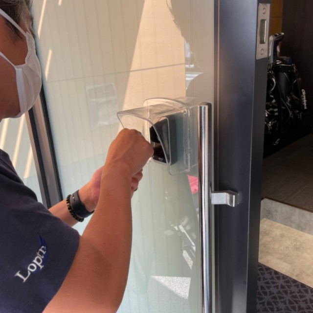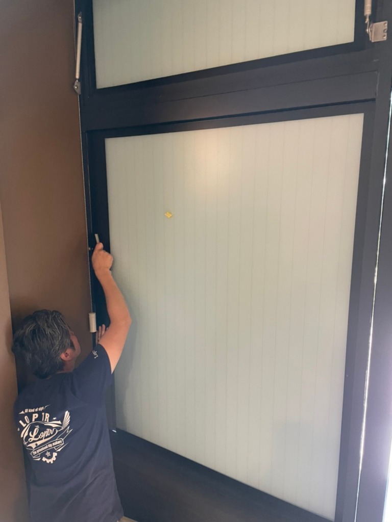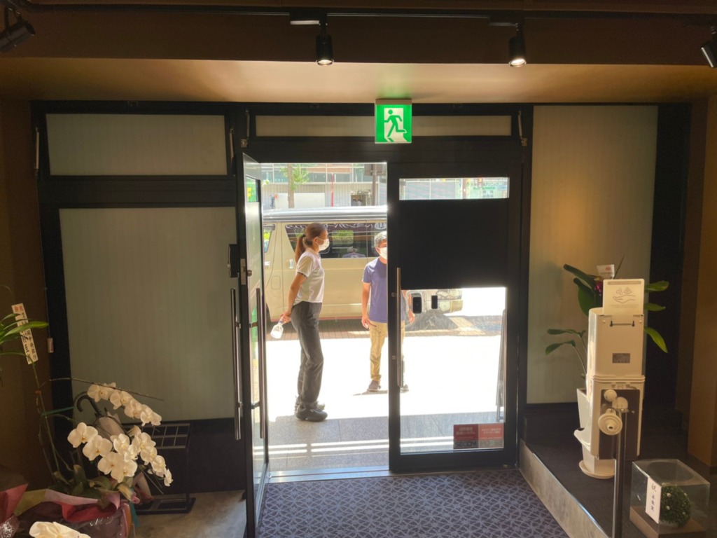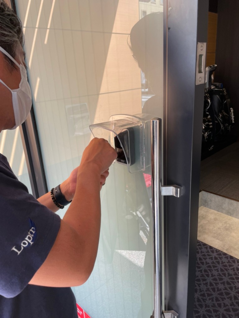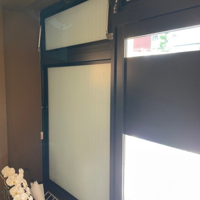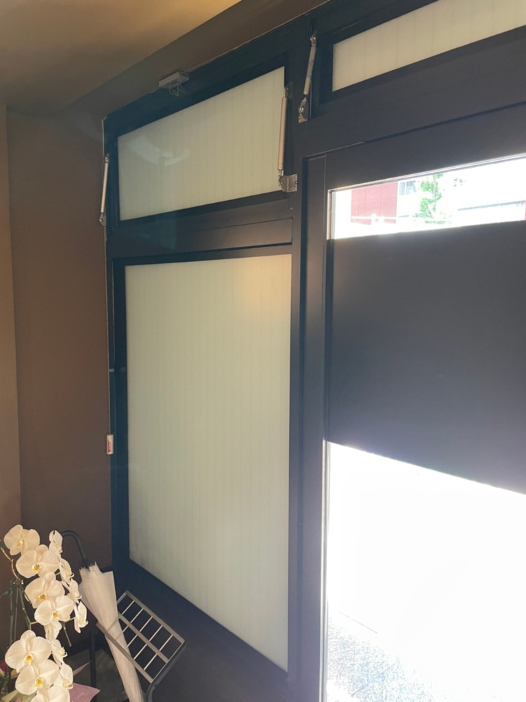 この網入りガラスの店舗様のお悩みは直貼りシート施工ができない事です。