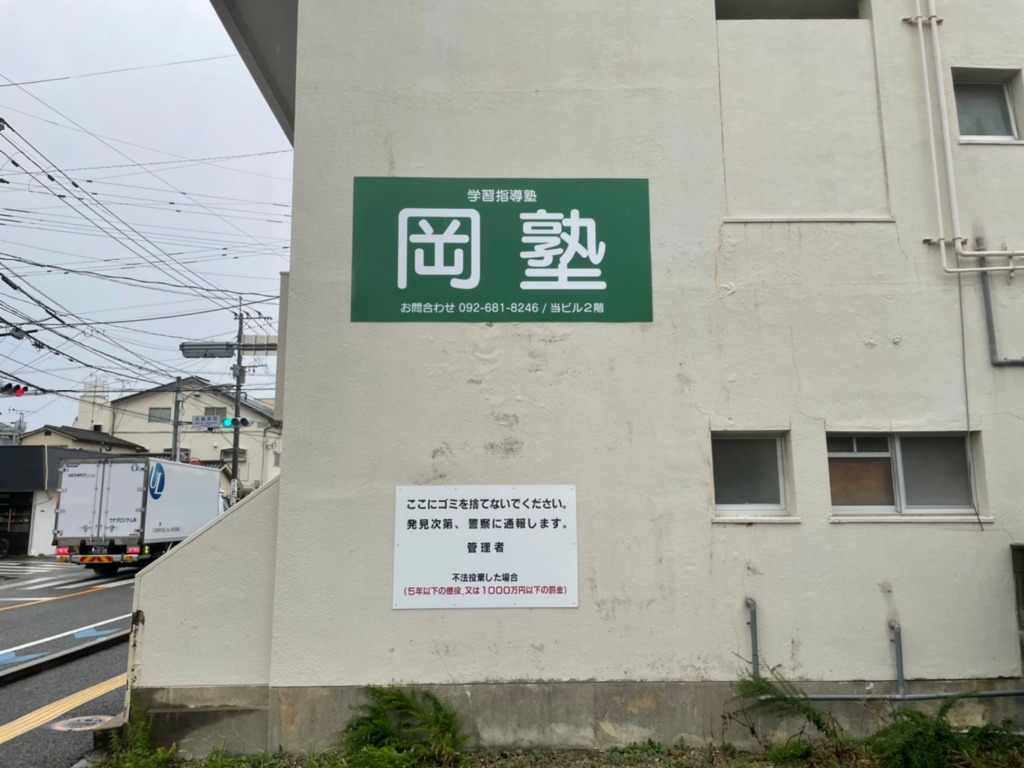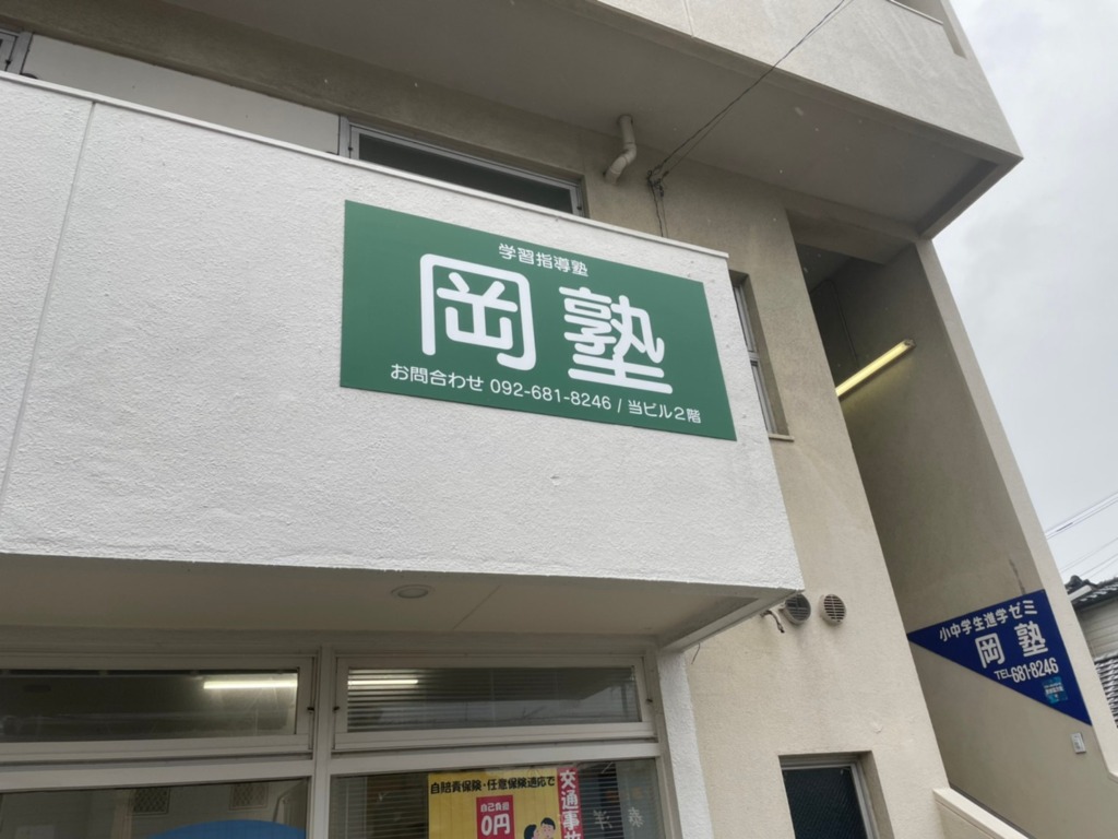 福岡市東区名島 岡塾様の壁面サイン製作施工を承りました
