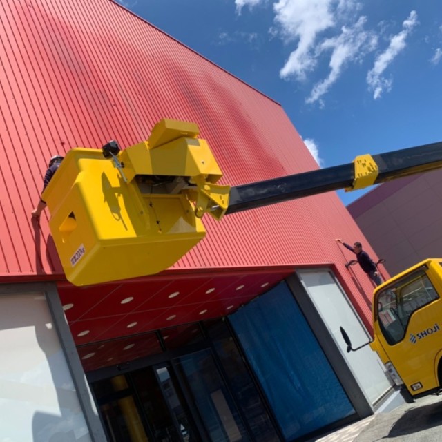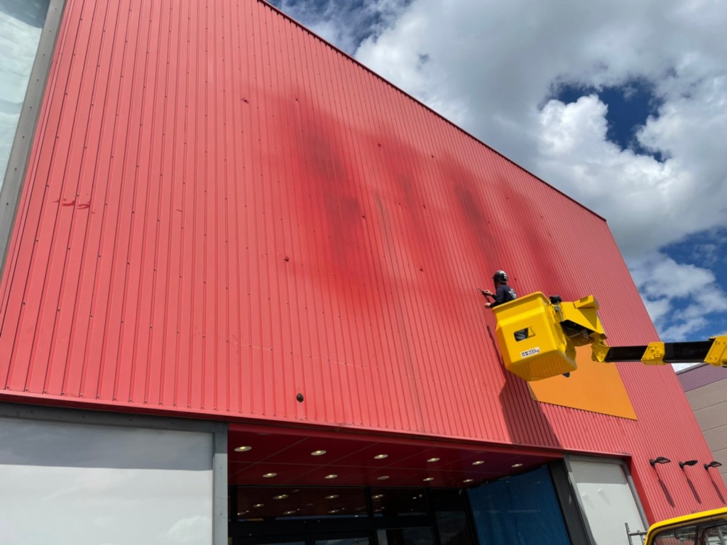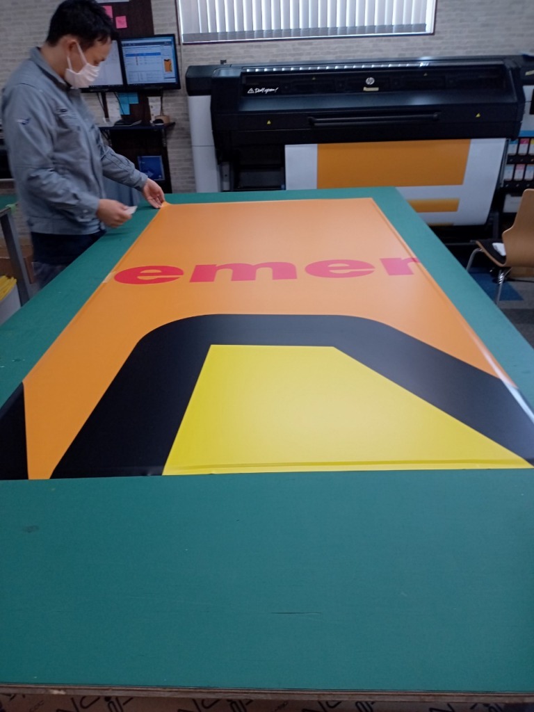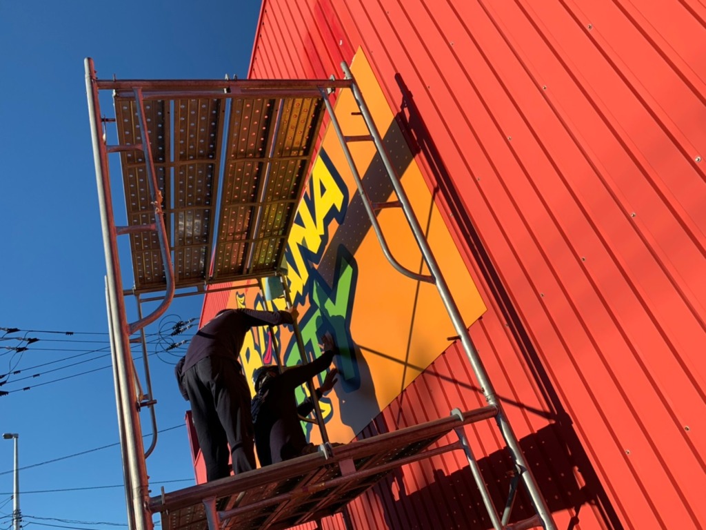 今回はとにかく大きかった・・正面:W9100×H5460(板30枚合わせ)道路側:W5460×H2730(板9枚合わせ)です。