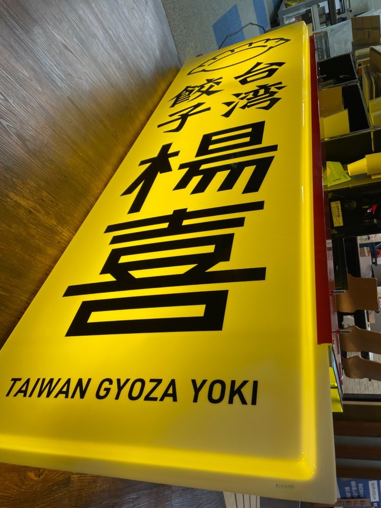 #5380 : 新店舗・袖看板(台湾餃子 楊喜様) WORKS DETAIL お客様名 台湾餃子 楊喜 施工場所 福岡市 業種 飲食店 カテゴリー 壁面看板電照サイン(正面発光/背面発光/側面発光)ポール看板/袖看板 竣工年月 2021/09/18 西新に新規オープン_台湾餃子 楊喜様 先行して袖看板・お持ち帰りサイン板面製作設置させて頂きました。