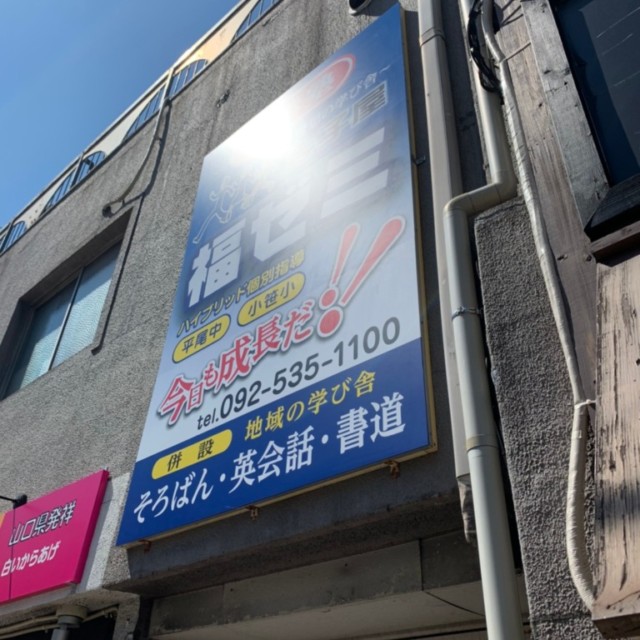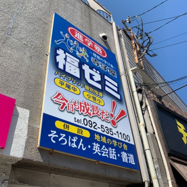 #5407 : 壁面サイン(寺子屋福ゼミ様) WORKS DETAIL お客様名 寺子屋福ゼミ 施工場所 福岡県福岡市中央区小笹 業種 教育施設 カテゴリー 壁面看板インクジェット出力 竣工年月 2021/09/22 福岡県福岡市中央区小笹 寺子屋福ゼミ様壁面サインを リニューアルさせて頂きました。