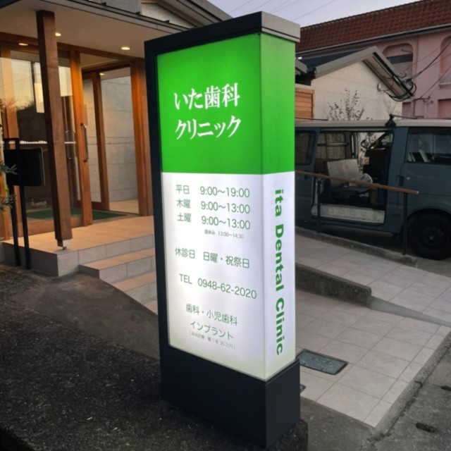側面発光・アクリル看板製作施工(いた歯科クリニック様) WORKS DETAIL お客様名 いた歯科クリニック様 施工場所 福岡県嘉麻市 業種 病院・クリニック カテゴリー アクリルサイン電照サイン(正面発光/背面発光/側面発光)チャンネル文字スタンド看板(A型/L型/可動式/電照式) 竣工年月 2021年10月 いた歯科クリニック様様 側面発光サイン製作施工を承りました。