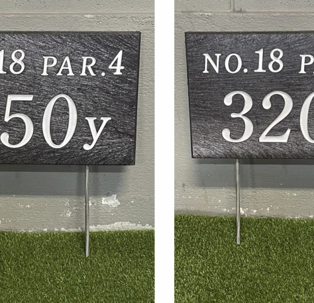 #6099:ゴルフ場用ヤード板 製作(高遊原カントリークラブ様) WORKS DETAIL お客様名 高遊原カントリークラブ様 施工場所 弊社工場 業種 ゴルフ場 カテゴリー ゴルフ場内表示板 竣工年月 2021年10月 ゴルフ場に設置するヤード表示板を承りました。
