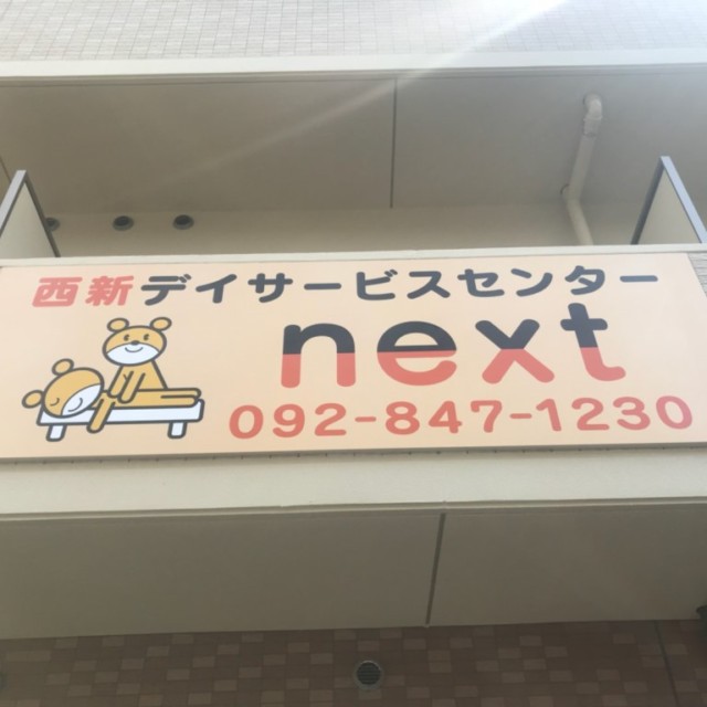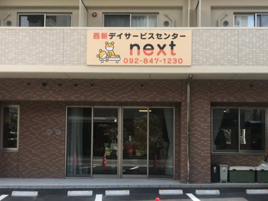 店舗サイン製作施工(西新デイサービスセンターnext様) WORKS DETAIL お客様名 西新デイサービスセンターnext様 施工場所 福岡市早良区 業種 ショップ・店舗 カテゴリー 壁面看板インクジェット出力 竣工年月 2019年3月 西新デイサービスセンターnext様の店舗サイン製作施工を承りました。