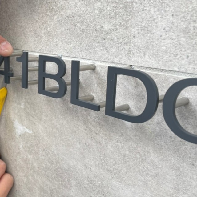 切文字は、個性、イメージも表現し、ピン立て浮かし施工することでさらに視認性も◎です!