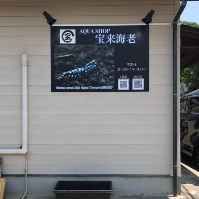 店舗看板製作(宝来海老様) WORKS DETAIL お客様名 宝来海老様 施工場所 中間市 業種 ショップ・店舗 カテゴリー インクジェット出力各種切文字(カルプ/アルミ複合板/アクリル/金属) 竣工年月 2019年5月 AQUA SHOP 宝来海老様より店舗看板製作を承りました。