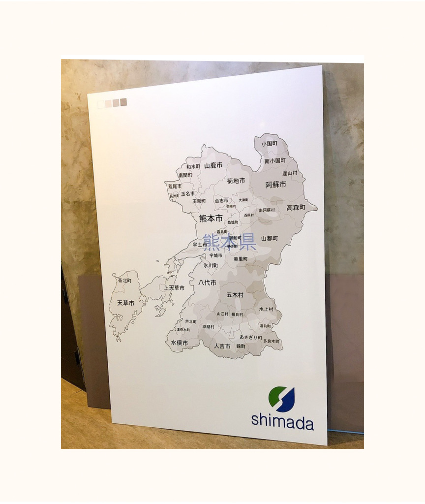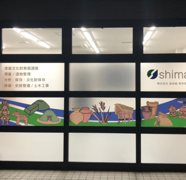 島田組 熊本島営業所様のガラス面グラフィック、オリジナルホワイトボード制作施工承りました