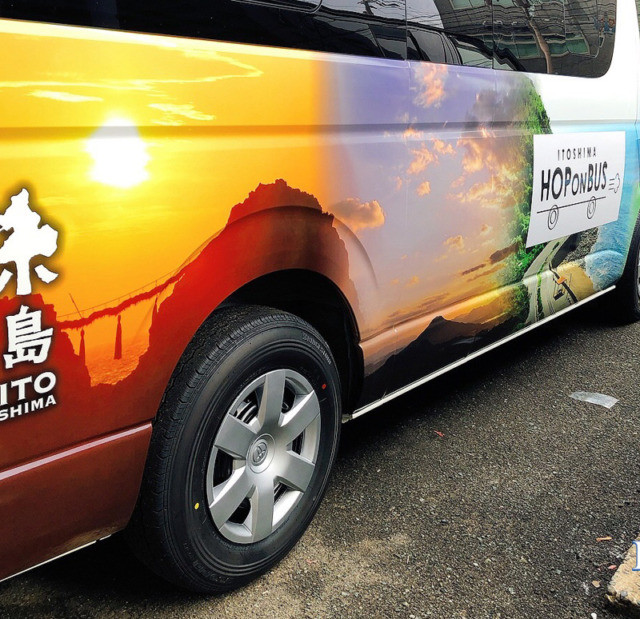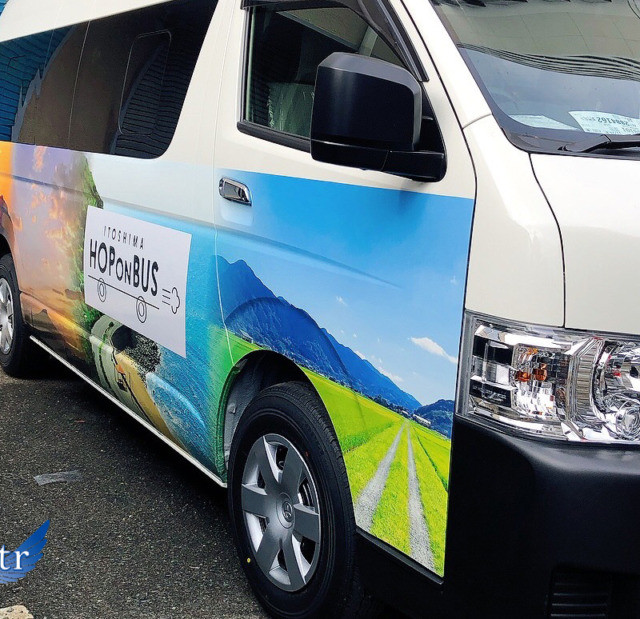 今後のバス運用を考慮するために、ロゴになる箇所はマグネットシートにて剥がせるようになっております。