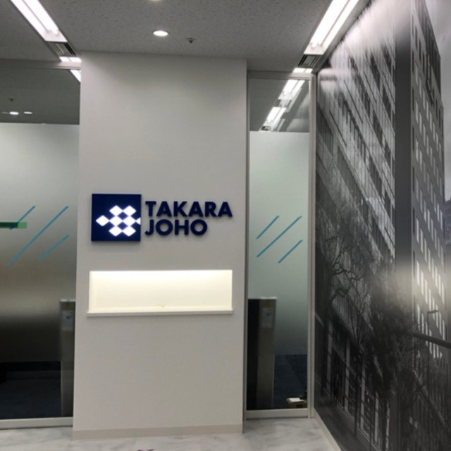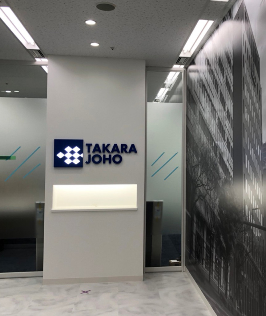 #5866:発光・オフィスサイン製作施工(宝情報様) WORKS DETAIL お客様名 宝情報様 施工場所 福岡市博多区 業種 オフィス・工場 カテゴリー ウィンドウグラフィックス電照サイン(正面発光/背面発光/側面発光)各種切文字(カルプ/アルミ複合板/アクリル/金属) 竣工年月 2022年月 宝情報様よりオフィスサイン製作施工を承りました。 【 ひし形のみ発光】人工大理石の切文字 【フォグラスシート】ガラスに貼るだけで、すりガラス調に仕上げる装飾用粘着シートです。