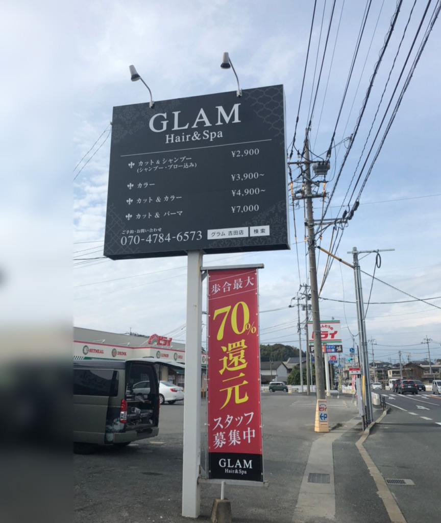 GLAM 吉田店様より店舗サイン製作施工を承りました。