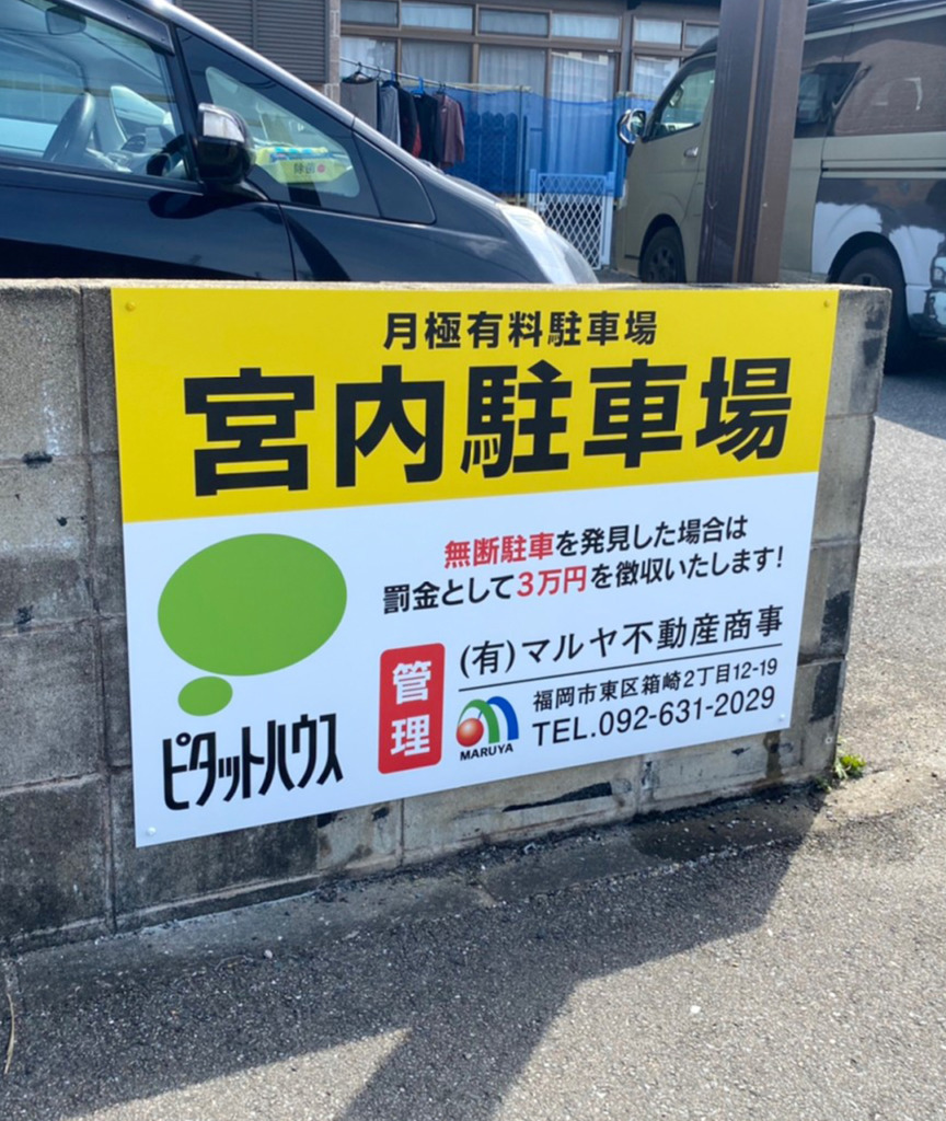 #6315:駐車場管理サイン製作施工(マルヤ不動産商事様) WORKS DETAIL お客様名 マルヤ不動産商事様 施工場所 業種 その他 カテゴリー アルミ複合板+インクジェット出力 竣工年月 マルヤ不動産商事様より駐車場管理サイン製作施工を承りました。 固定用ビスも同色仕上げになっております。