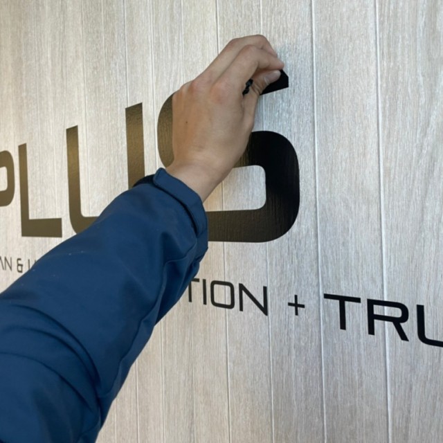 #6951:新ロゴ変更製作施工(プラスト様) WORKS DETAIL お客様名 プラスト様 施工場所 博多 業種 カテゴリー カッティングシート 竣工年月 2022年5月 プラスト様より〇〇サイン製作施工を承りました。 【施工中】 【施工中】