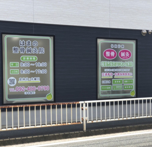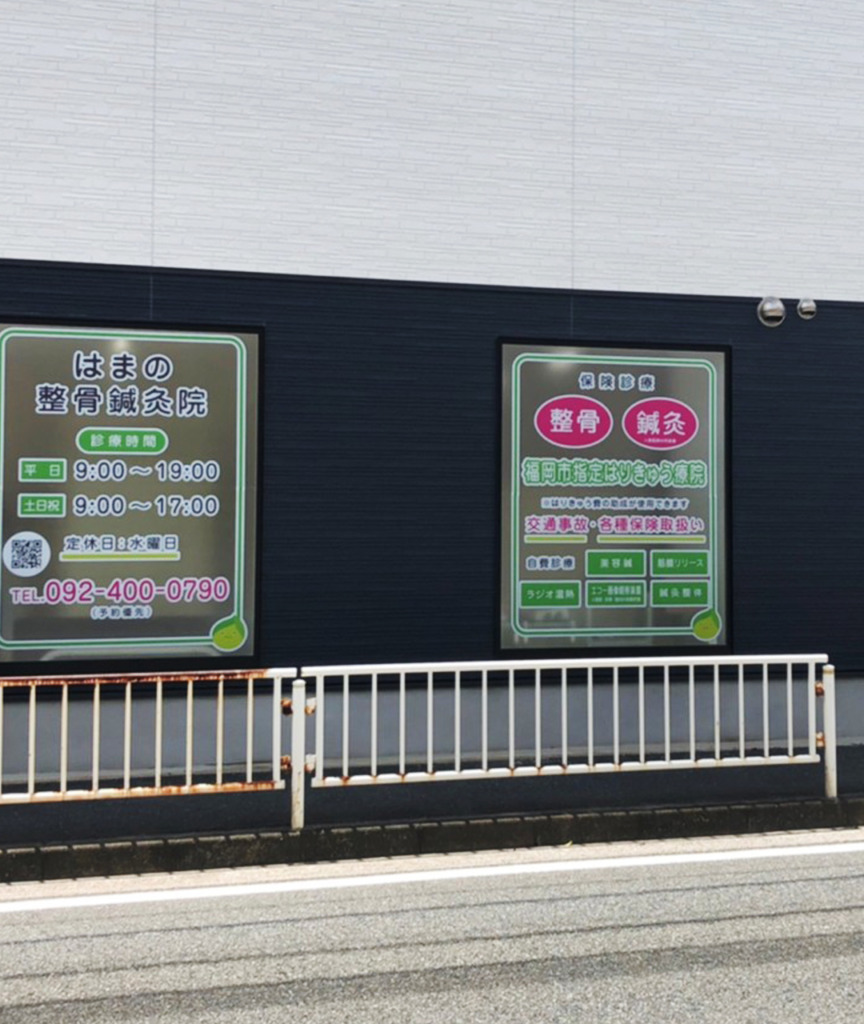 #6870:ガラス面シート貼り製作施工(曙はまの鍼灸院様) WORKS DETAIL お客様名 曙はまの鍼灸院様 施工場所 福岡市城南区 業種 病院・クリニック カテゴリー インクジェット出力 竣工年月 2022年6月 曙はまの鍼灸院様よりガラス面シート貼り製作施工を承りました。