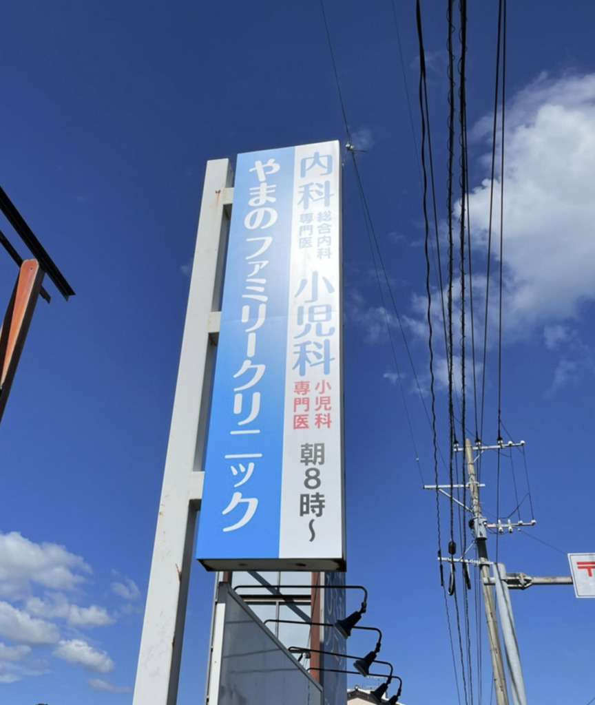 #6975:クリニックサイン製作施工(やまのファミリークリニック様) WORKS DETAIL お客様名 やまのファミリークリニック様 施工場所 糟屋郡篠栗町 業種 病院・クリニック カテゴリー インクジェット出力各種切文字(カルプ/アルミ複合板/アクリル/金属)自立看板/野立看板 竣工年月 2022年7月 糟屋郡篠栗町にある やまのファミリークリニック様よりサイン製作施工を承りました。 【施工中】安全確保して行っております。