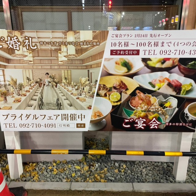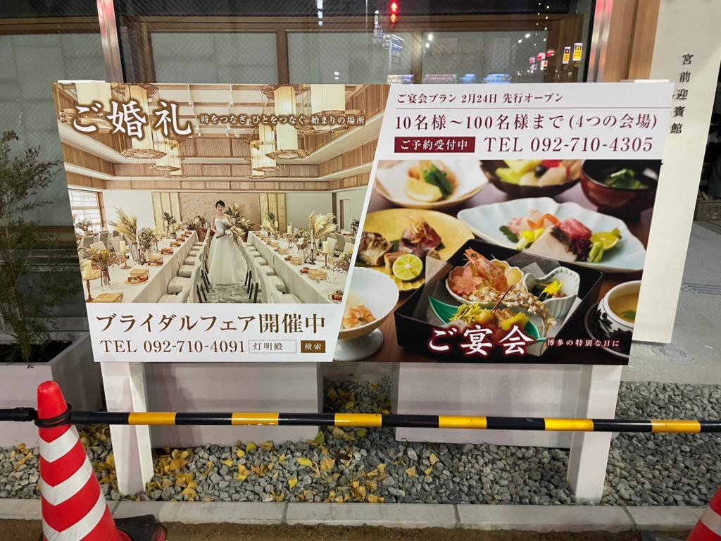 福岡市博多区上川端町1丁目(櫛田神社隣り)に、プレオープン予定の「宮前迎賓館 灯明殿」様独立サイン製作施工をうけたまわりました。