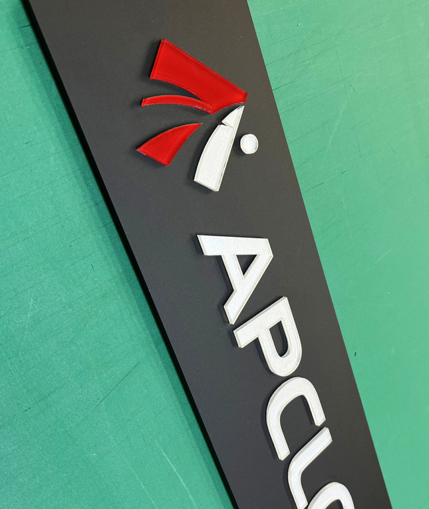 #8095:アクリルサイン製作(アプクロ様) WORKS DETAIL お客様名 アプクロ様 施工場所 福岡市博多区 業種 オフィス・工場 カテゴリー アクリルサイン各種切文字(カルプ/アルミ複合板/アクリル/金属) 竣工年月 2023年1月 アプクロ様よりアクリルサイン製作を承りました。 仕様:黒ベース 透明アクリル 3t