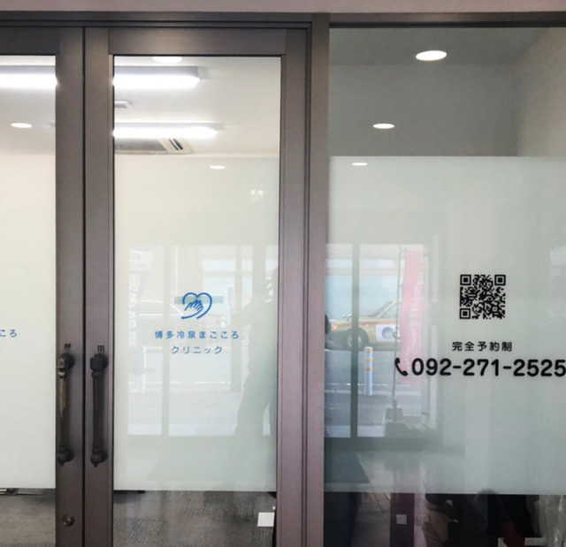 #7301:院内表示製作施工(博多冷泉まごころクリニック様) WORKS DETAIL お客様名 博多冷泉まごころクリニック様 施工場所 福岡市博多区 業種 病院・クリニック カテゴリー カッティングシート電照サイン(正面発光/背面発光/側面発光) 竣工年月 2022.08 博多冷泉まごころクリニック様より院内表示製作施工を承りました。 【入口ガラスカッティングシート】 【クリニック内表示】