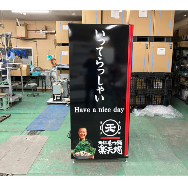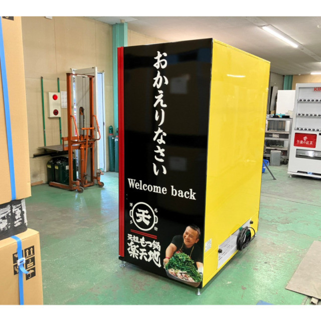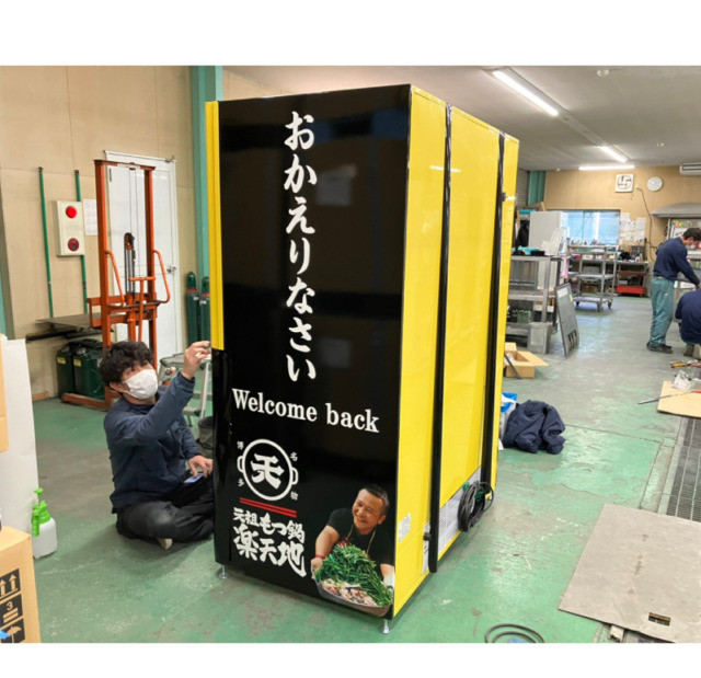 福岡・博多で創業45年のもつ鍋専門店楽天地様の自動販売機ラッピング施工承りました。