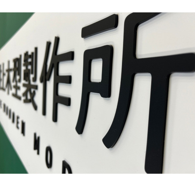 今回は黒マットアクリルの切り文字を使用し、お持ちいただいた新ロゴをスタイリッシュに魅せます。